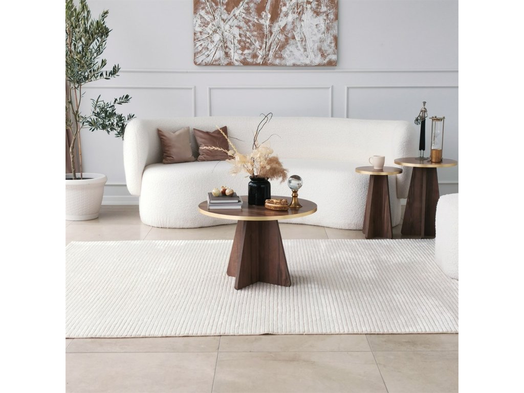 Proměňte svůj obývací pokoj v oázu elegance a sofistikovanosti s naším úžasným konferenčním stolkem ve zlaté barvě a ořechu. Tento nádherný kus nábytku, vyrobený s maximální péčí a důrazem na detail, je navržen tak, aby pozvedl váš domácí dekor do nových výšin.