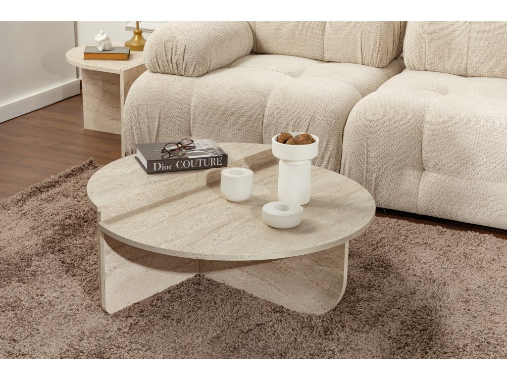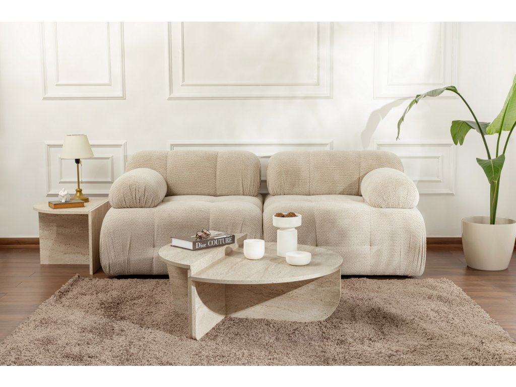Mramorový konferenční stolek je dokonalým doplňkem vašeho domova, který přidá dotek glamour a luxusu do vašeho obytného prostoru. Jeho štíhlý design a travertinová barva doplní jakýkoli styl dekorace, od moderního po tradiční.