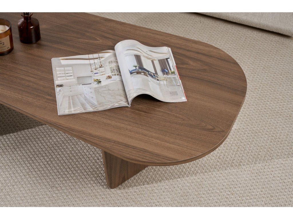 Dodejte svému domovu moderní nádech s tímto elegantním a současným konferenčním stolkem. Jeho ořechová barva dodává teplo a bohatství každé místnosti, zatímco jeho prostorný design poskytuje dostatek místa pro vaše oblíbené knihy, časopisy a dekorace. Ať už si vychutnáváte šálek kávy s přáteli, nebo se jen tak relaxujete na pohovce, tento konferenční stolek je dokonalým doplňkem vašeho obytného prostoru.