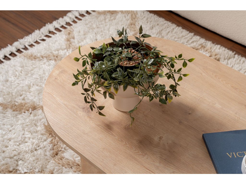 Představte si, jak popíjíte ranní kávu nebo si užíváte útulný večer s blízkými u tohoto nádherného konferenčního stolku. Jeho sytá barva safírového dubu dodá každému pokoji nádech luxusu, zatímco 18 mm silná 100% melaminem potažená dřevotřísková deska zajišťuje odolnost a dlouhou životnost.