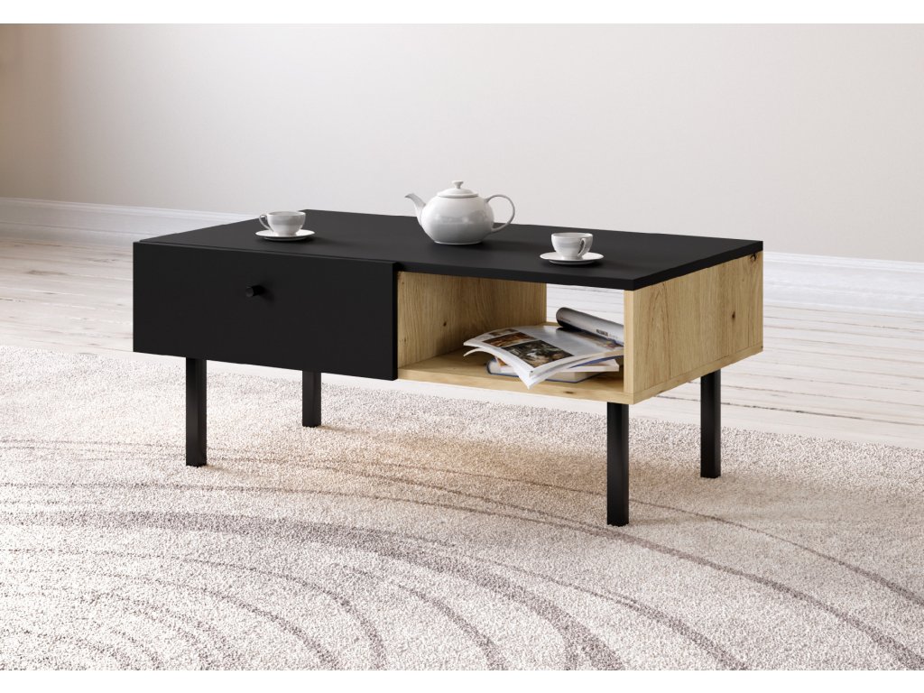 Nábytek má prostornou zásuvku na kuličkovém pojezdu, který umožňuje její úplné vysunutí. Stolek má stabilní kovové nožky, díky nimž používání nábytku poskytuje pocit bezpečí a pohodlí.