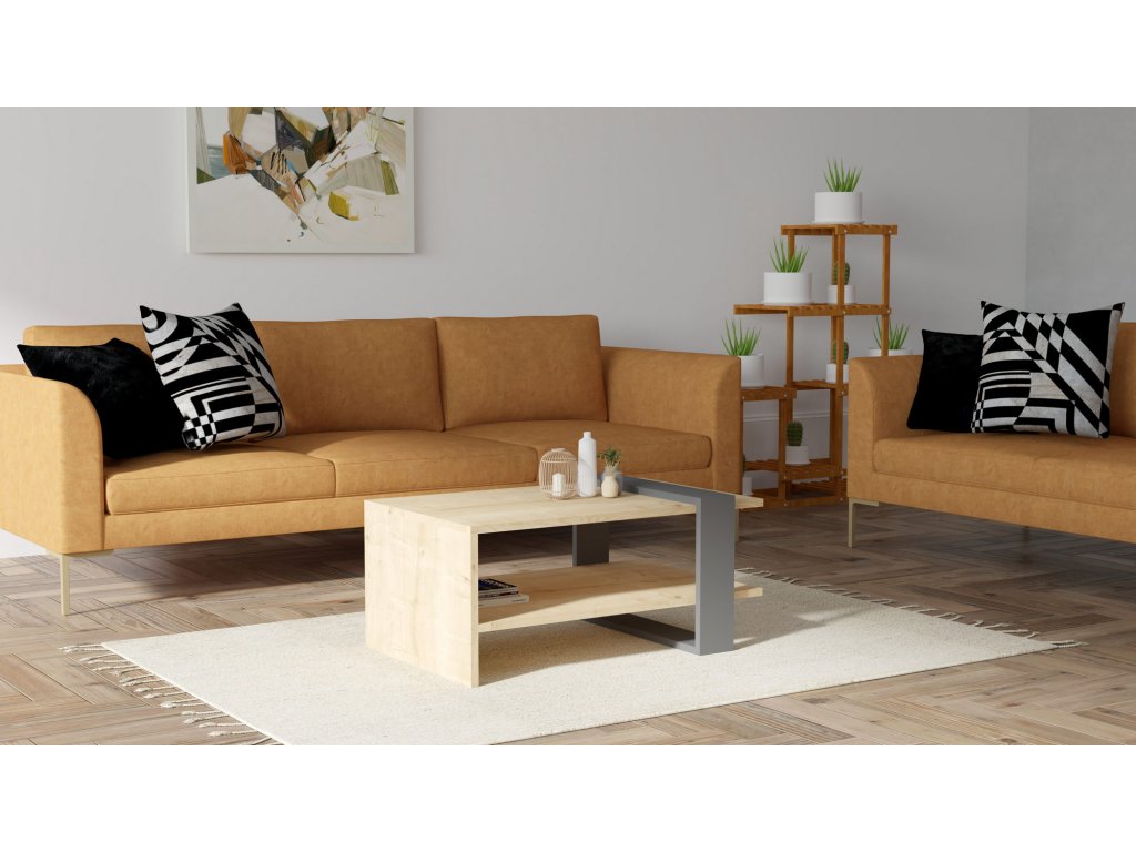 Tento konferenční stolek se díky svému elegantnímu a minimalistickému designu snadno začlení do jakéhokoli interiéru. Kombinace antracitové a dubové barvy dodá vašemu obývacímu pokoji nádech tepla a sofistikovanosti a vytvoří útulnou a příjemnou atmosféru pro vás i vaše blízké.
