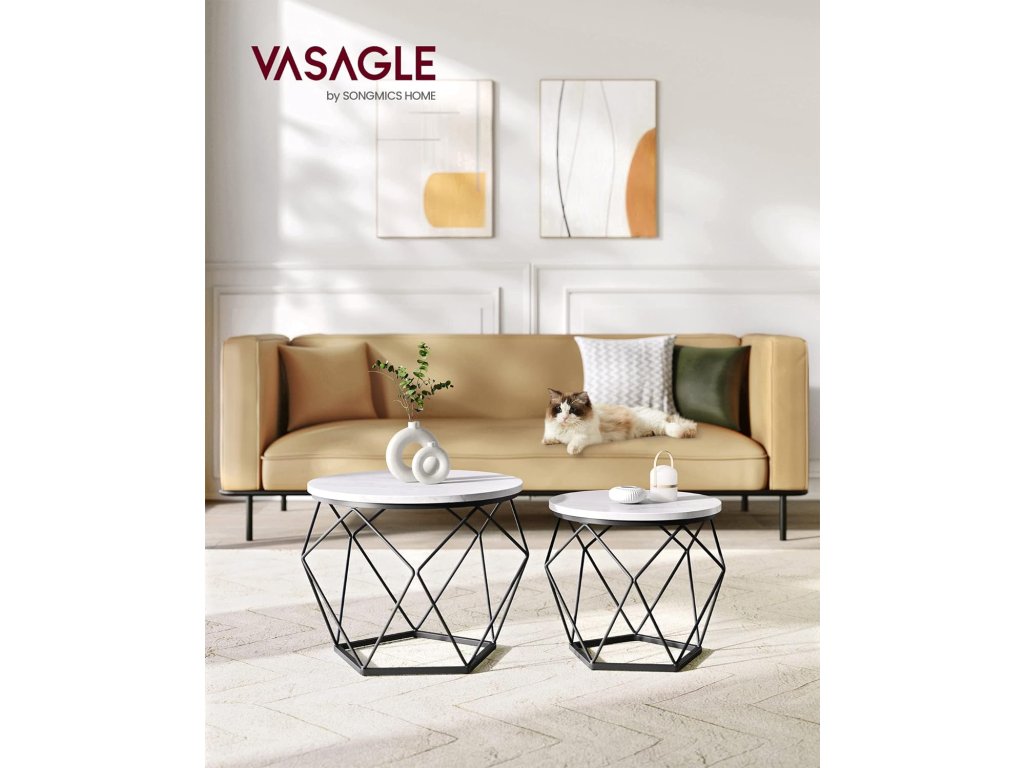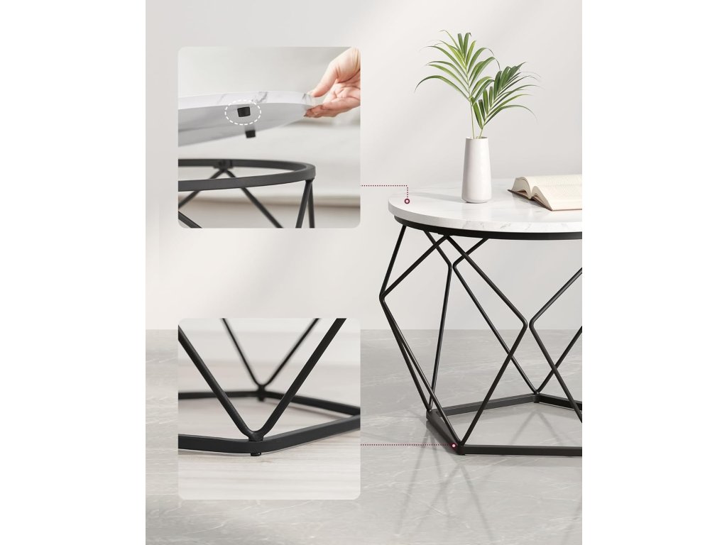 Díky kombinaci kvalitní dřevotřískové desky a robustního ocelového rámu je tato sada bočních stolků stabilní, takže se nebude kývat pokaždé, když zvednete šálek kávy. Každý stolek unese až 20 kg