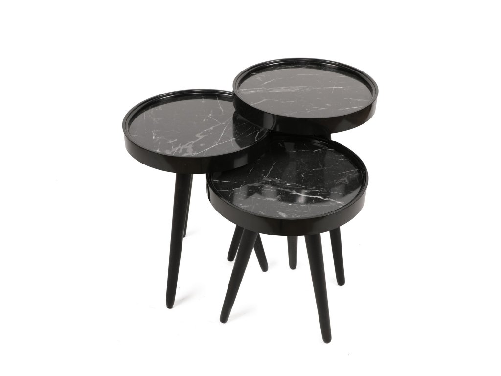 Sada konferenčních stolků CALL jsou tři černé stolečky, které mají ozdobnou kruhovou desku mramorového dekoru.