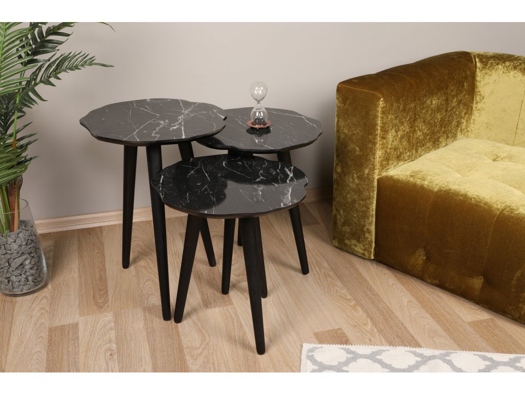 Sada konferenčních stolků FORGA čítá tři černé rozměrově podobné designově však stejné stolky.