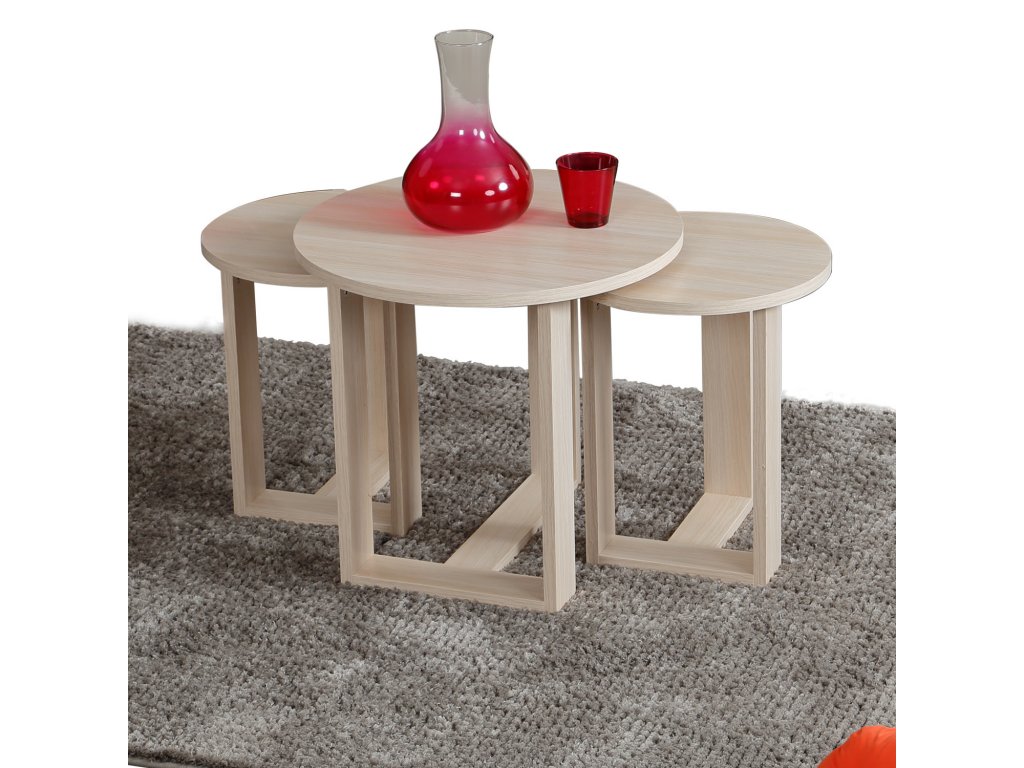 Sada 3 kulatých konferenčních stolků MIRA v dekoru dub.