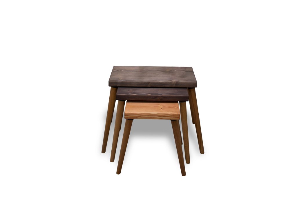 Jsou ručně vyrobené z borovicového dřeva v dekorech ořech a dub.(3 kusy)