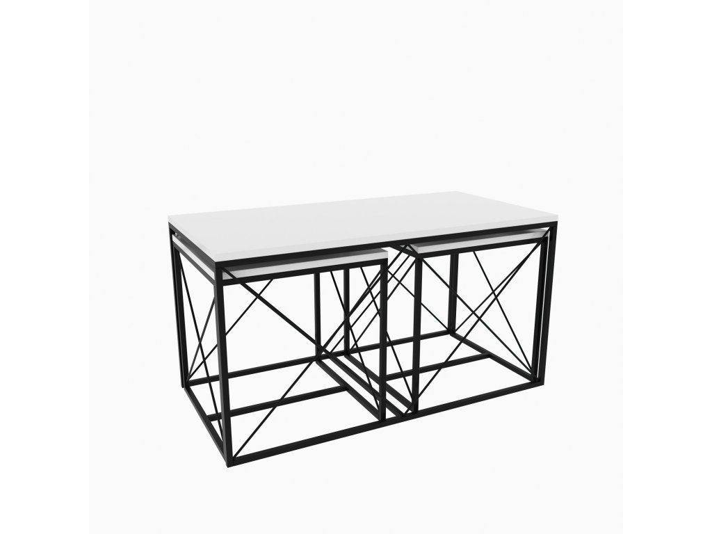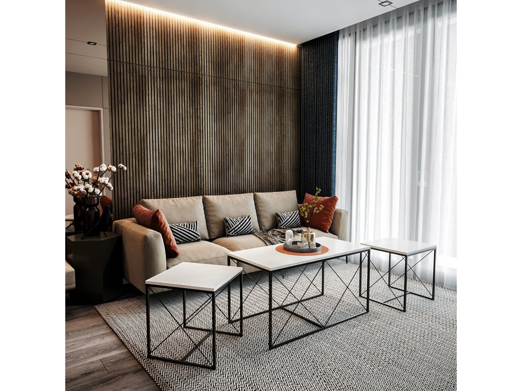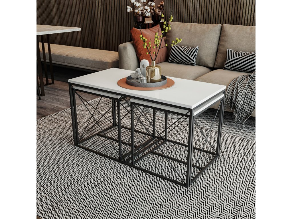 Kontrastní barvy bílé a černé dělají z této soupravy konferenčních stolků skutečný výrazný kousek. Elegantní a moderní design bez námahy doplní jakýkoli stávající dekor a dodá vašemu obytnému prostoru nádech sofistikovanosti.