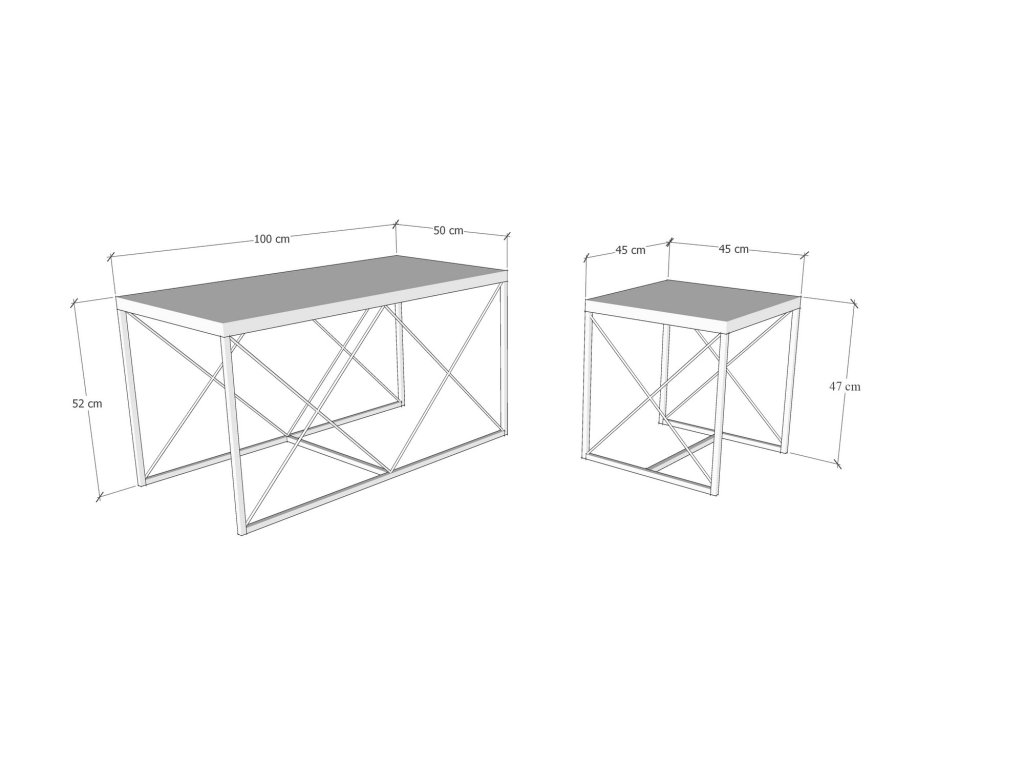 Větší konferenční stolek se může pochlubit velkorysými rozměry: na šířku měří 100 cm, na výšku 52 cm a do hloubky 50 cm. Menší konferenční stolky, které se dodávají v sadě po dvou, měří 45 cm na šířku, 52 cm na výšku a 45 cm do hloubky. Tato všestranná sada nabízí dostatečnou plochu pro všechny vaše zábavní potřeby.