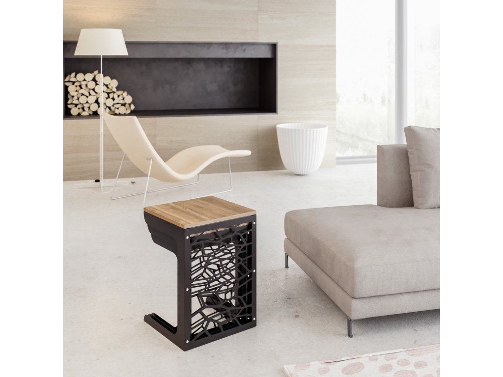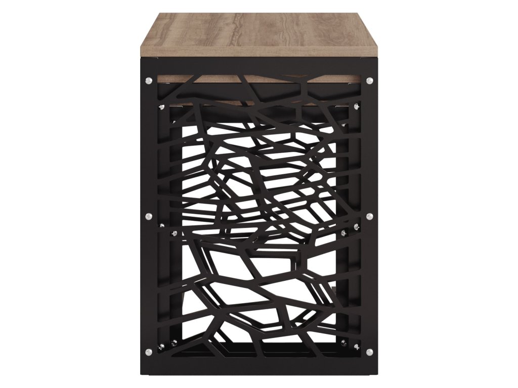Jsou vyrobené z černého kovu a z 18 mm silných desek pokrytých 100 % melaminem v dekoru ořech.