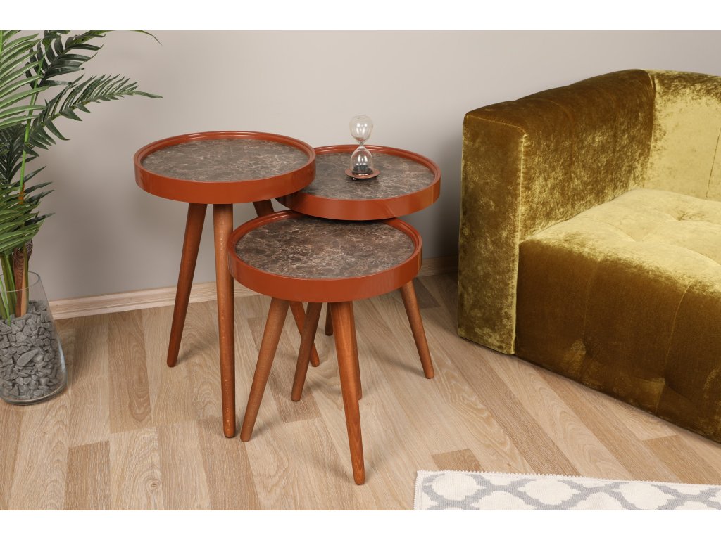 Rozměry nejmenšího stolku: Průměr: 39 cm Výška: 48 cm (1 kus)