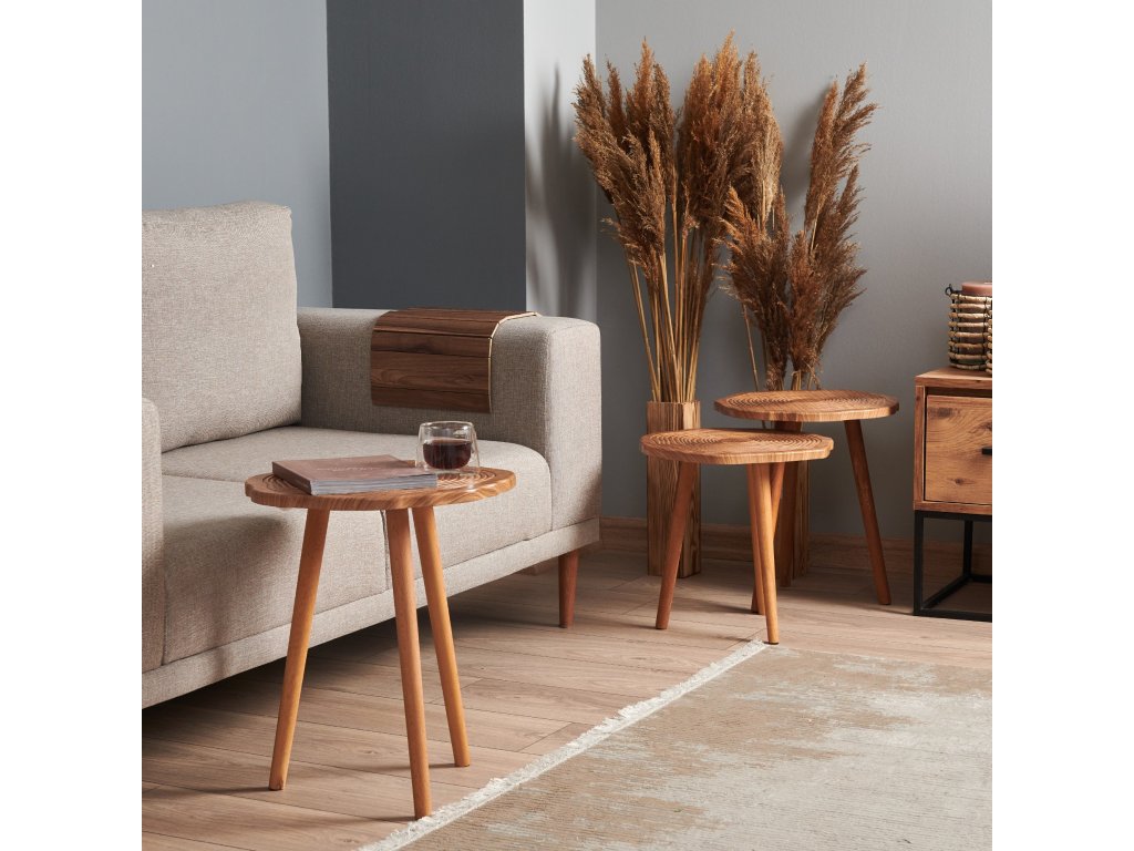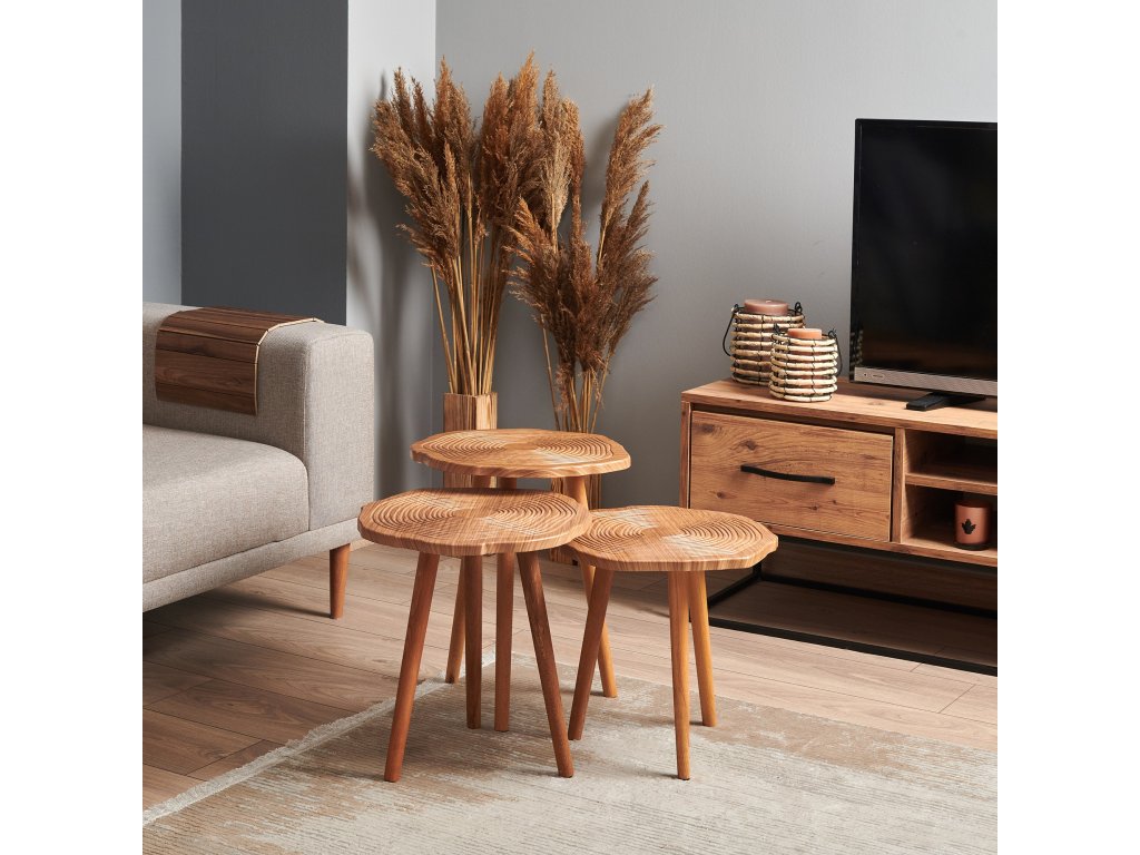 TUVALLE je trojice v dekoru ořech vyrobený designově stejných však výškově rozdílných konferenčních stolků.