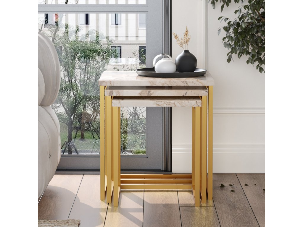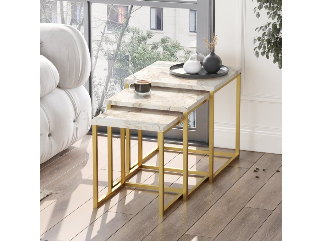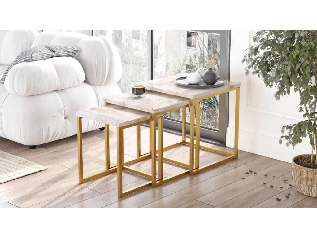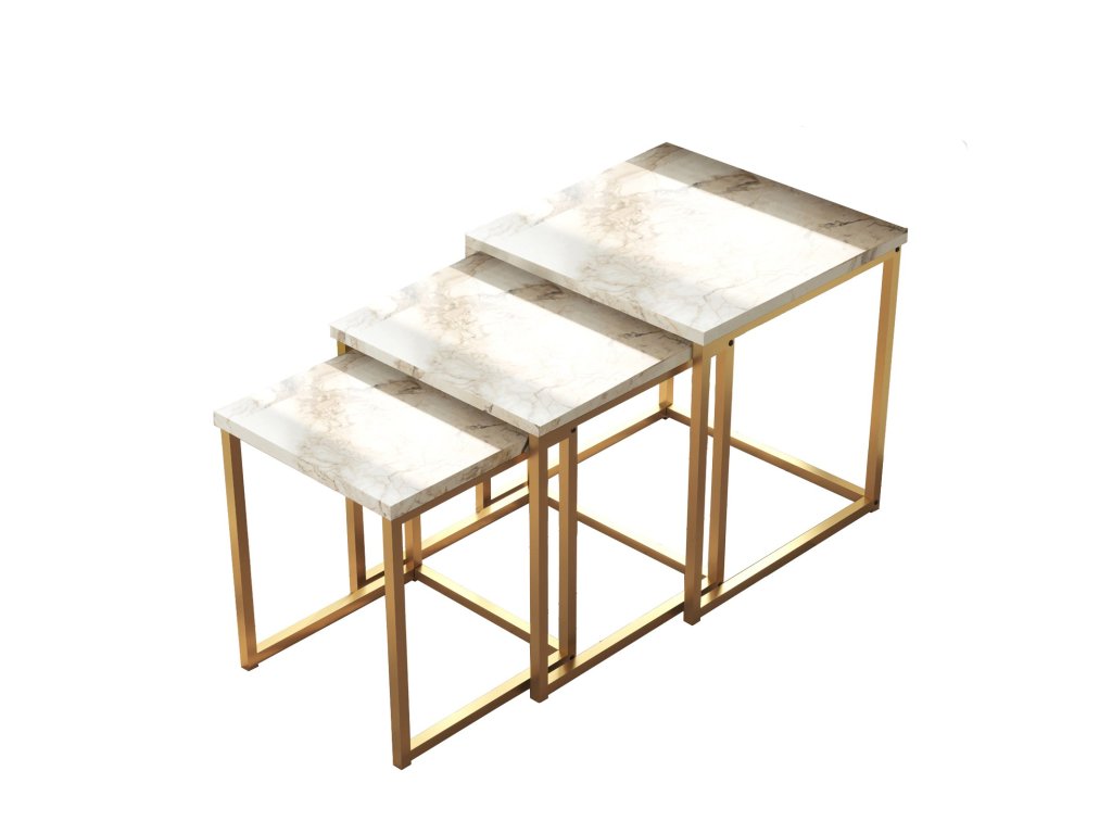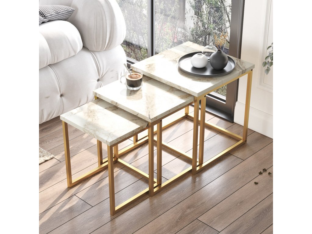 Set konferenčních stolků VG7 bílý mramor zlatý