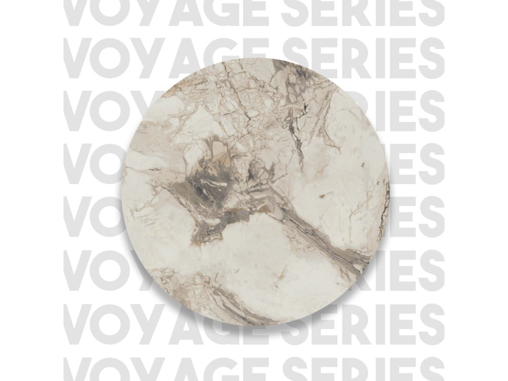 VG7 stolky mají stejný mramorovo-zlatý design jen rozměrově se nepatrně liší, aby bylo možné je složit pod sebe a ušetřit tak místo, když nejsou všechny současně potřeba.