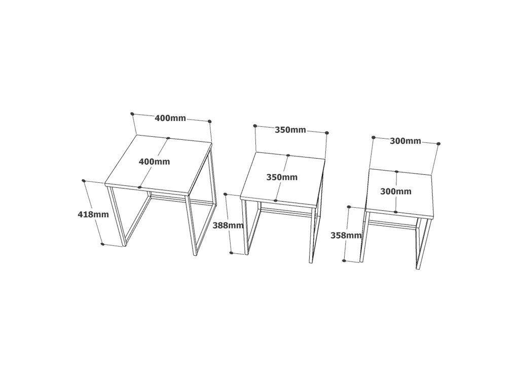 Rozměry nejmenšího stolku: Šířka: 40 cm Hloubka: 40 cm Výška: 41,8 cm (1 kus)