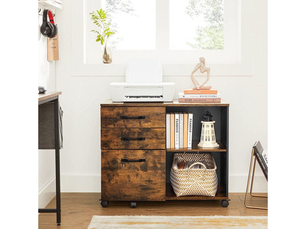 Pojízdná kancelářská skříňka na dokumenty s třemi zásuvkami a dvěma policemi pomůže udržet přehled v kanceláři nebo domácí pracovně