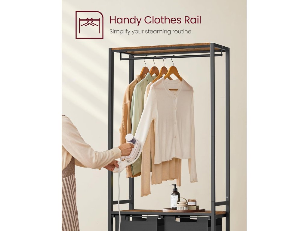 S praktickou závěsnou lištou můžete pověsit oblečení a nechat je přirozeně uschnout na vzduchu. To zajistí, že vaše oblečení bude svěže a připravené na další den. Závěsná lišta také slouží pro vertikální napařování, což zjednoduší život při praní prádla.