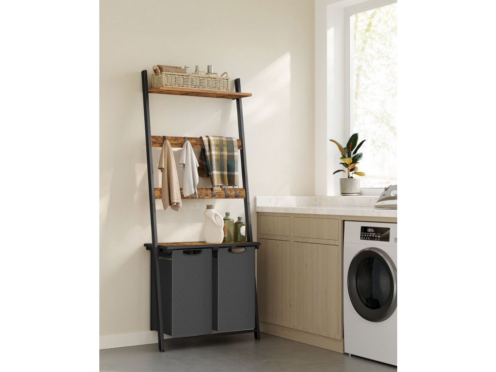 S košem na prádlo s policí a věšákem si zajistíte nejen praktické uspořádání prádla, ale i stylový doplněk do vaší koupelny.