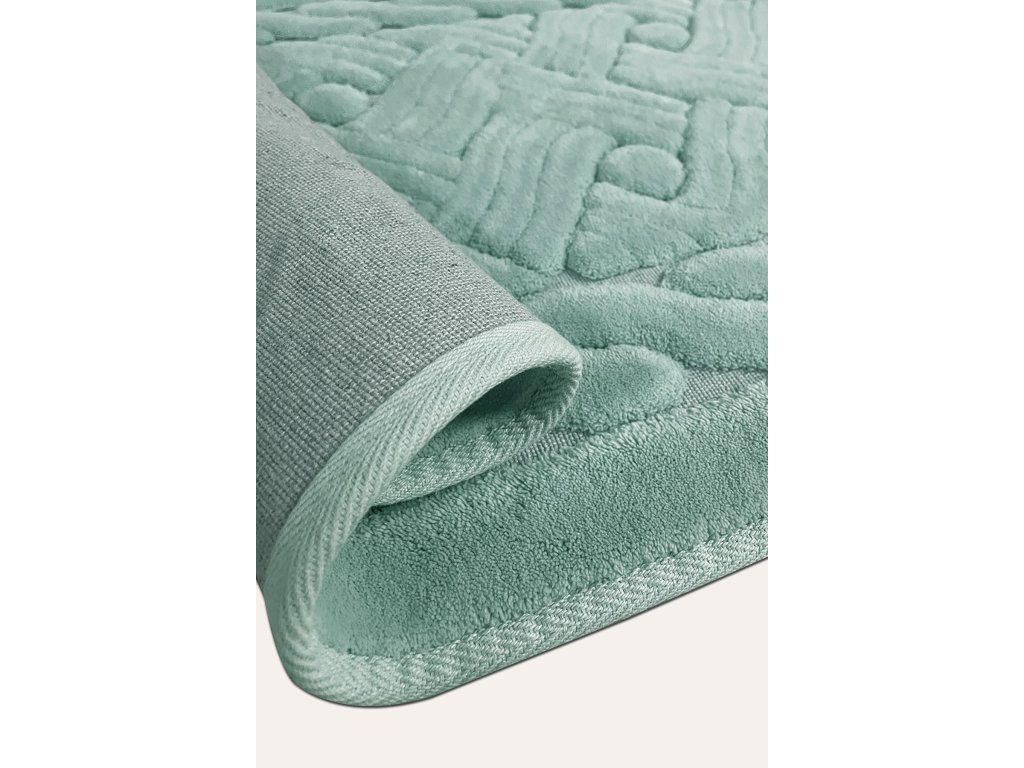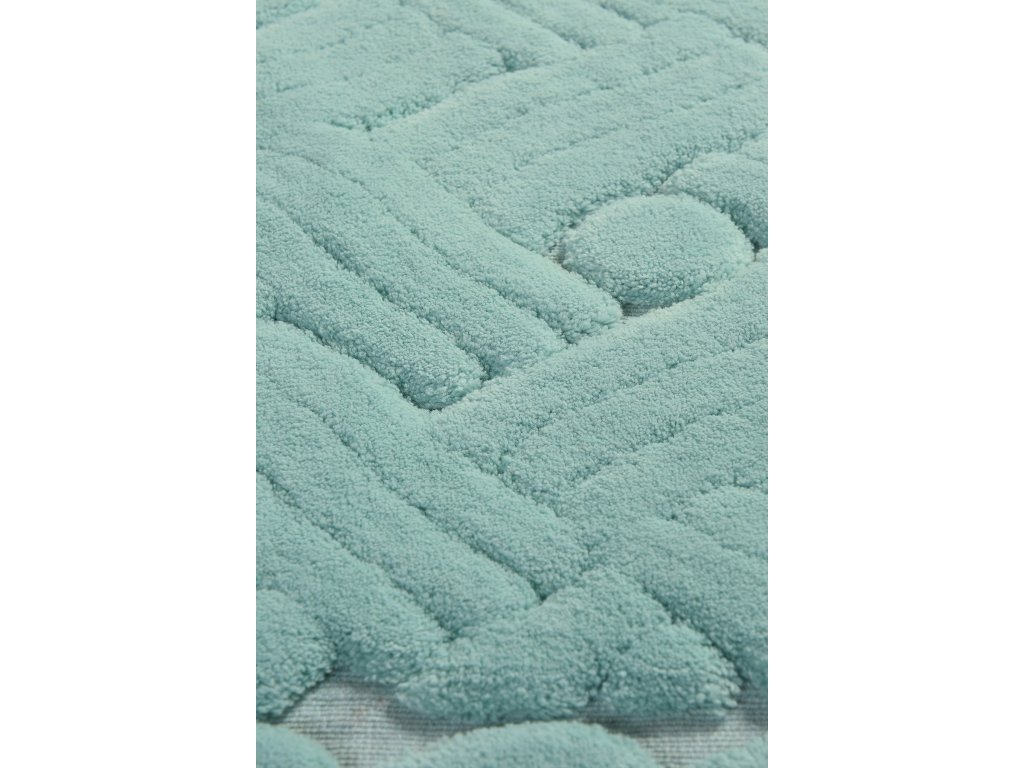 Sada dvou koupelnových předložek s 3D vzorem a tyrkysovou barvou.