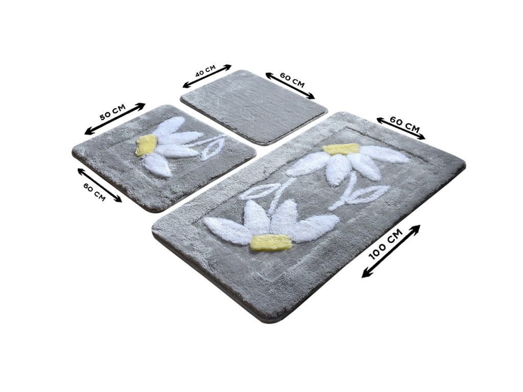 Koupelnová předložka trojdílná DAISY šedá s květinami