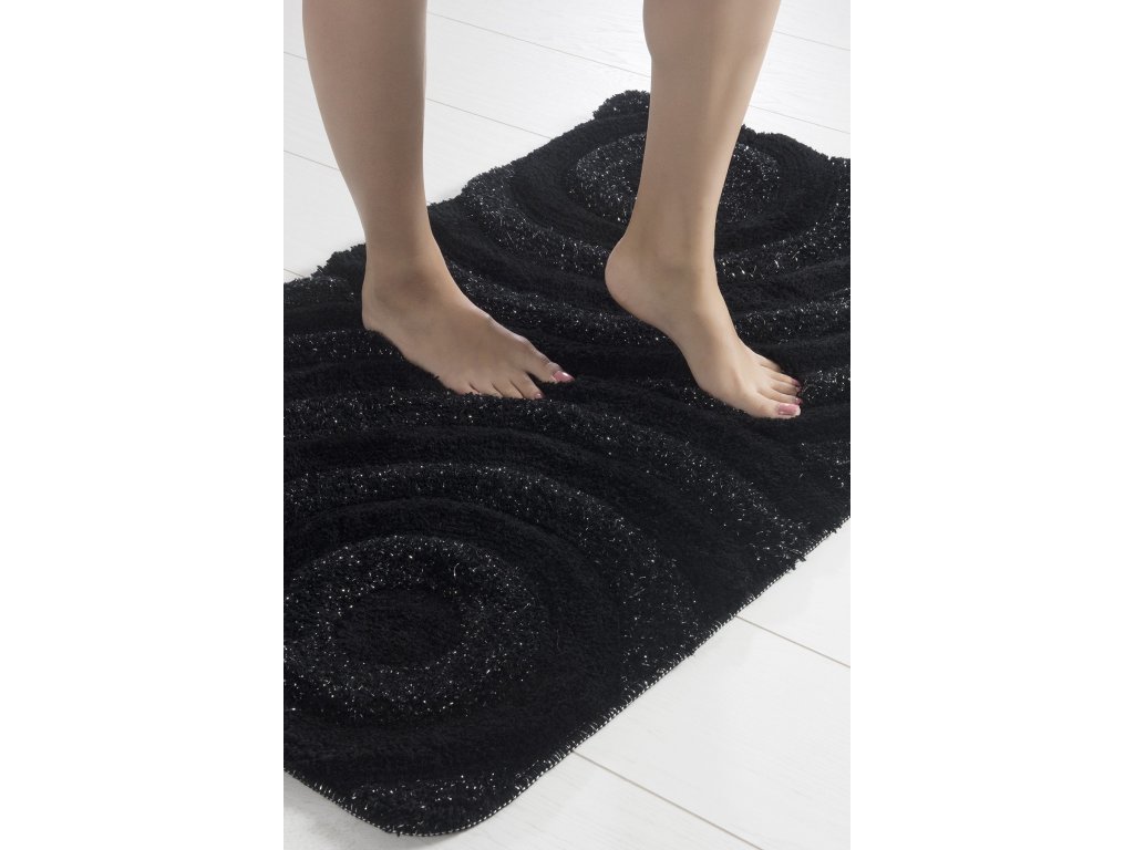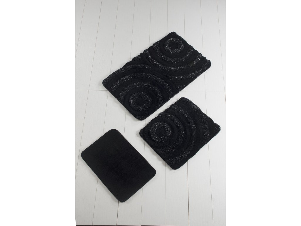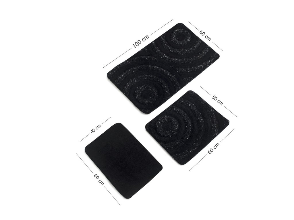 Sada tří luxusních koupelnových rohoží v černém dekoru.