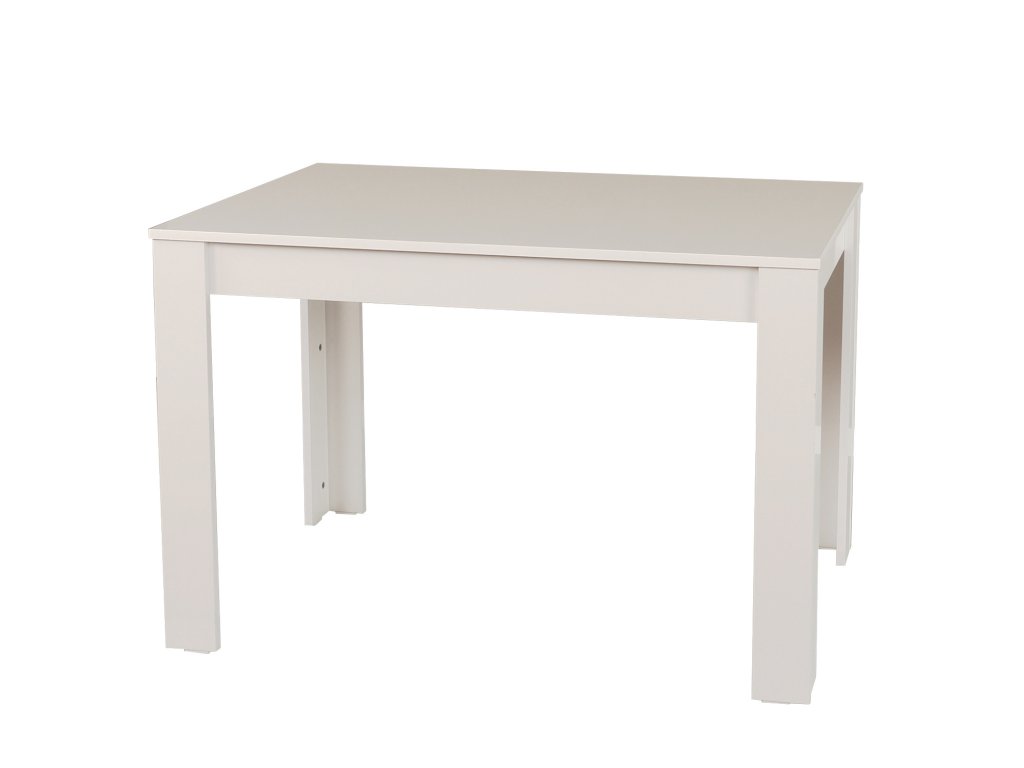 Bílý jídelní stůl SINGLE je téměř klasickým stolem, jeho zvláštností jsou však stabilní nohy.