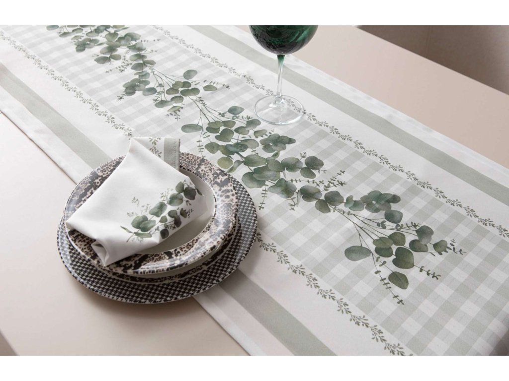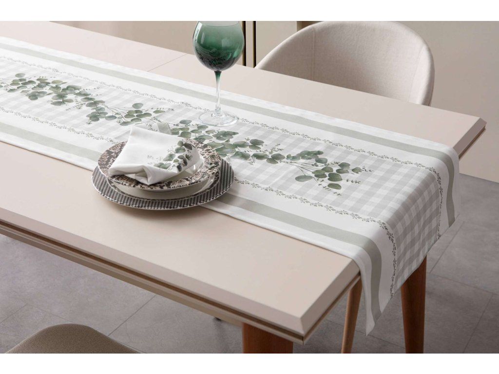 Běhoun EUCALYPT 50 x 130 cm zelená bílá