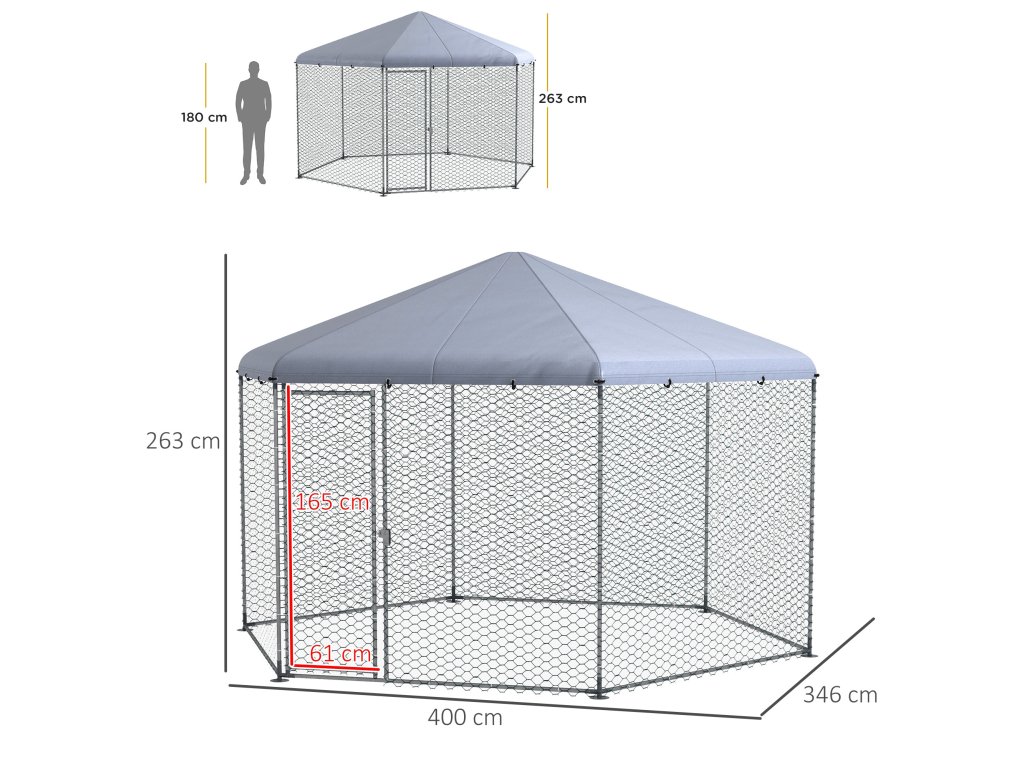 Výběh pro slepice šestiúhelník kovový se střechou pro 10-15 slepic 400 x 263 x 346 cm