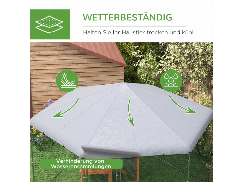 ✔ Stinná střecha venkovního výběhu umožňuje vašim domácím mazlíčkům zůstat v chladu, suchu, pohodlí a ochraně před UV zářením.
