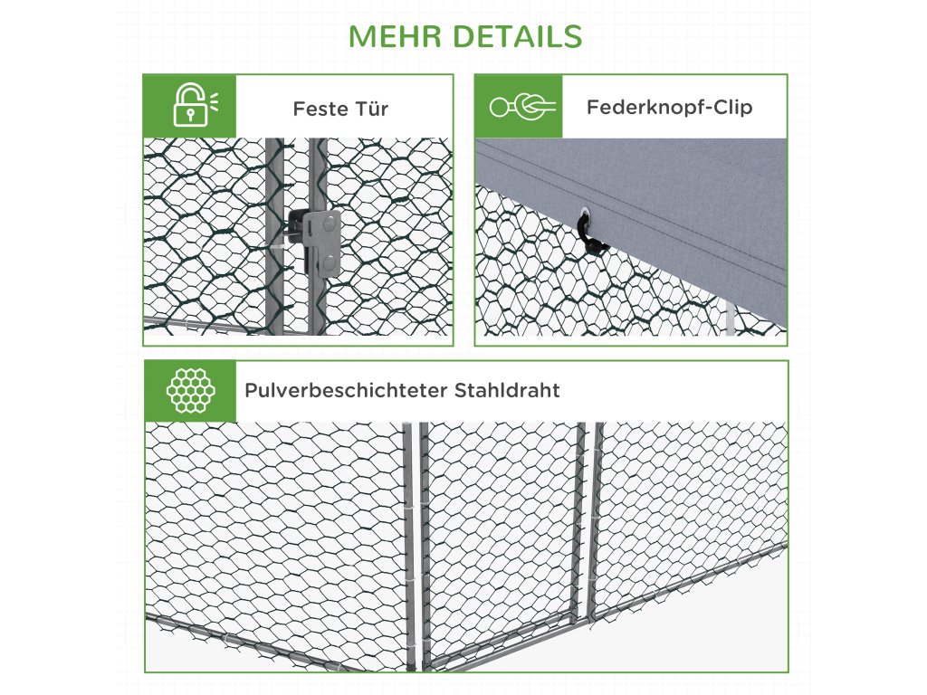 ✔ Pozinkovaný drát venkovního výběhu dobře chrání vaše zvířata a zajišťuje optimální větrání
