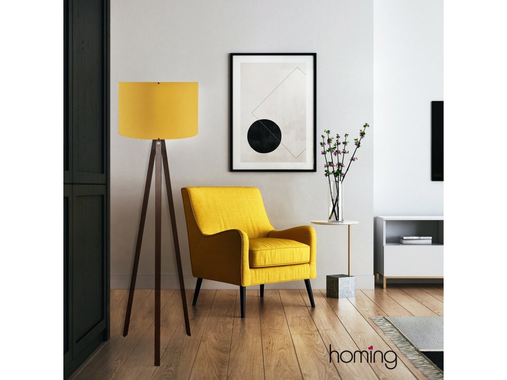 Lampa s trendy žlutým kloboukem a výškou 140 cm.
