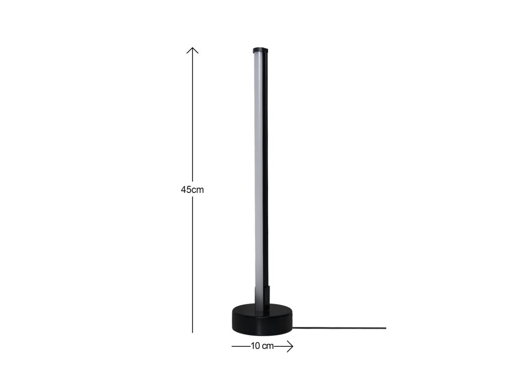 Stolní lampička LUMOS má malou základnu a úzké vysoké tělo a po celé jeho délce osvětlí cokoliv, na co ji nasměrujete.