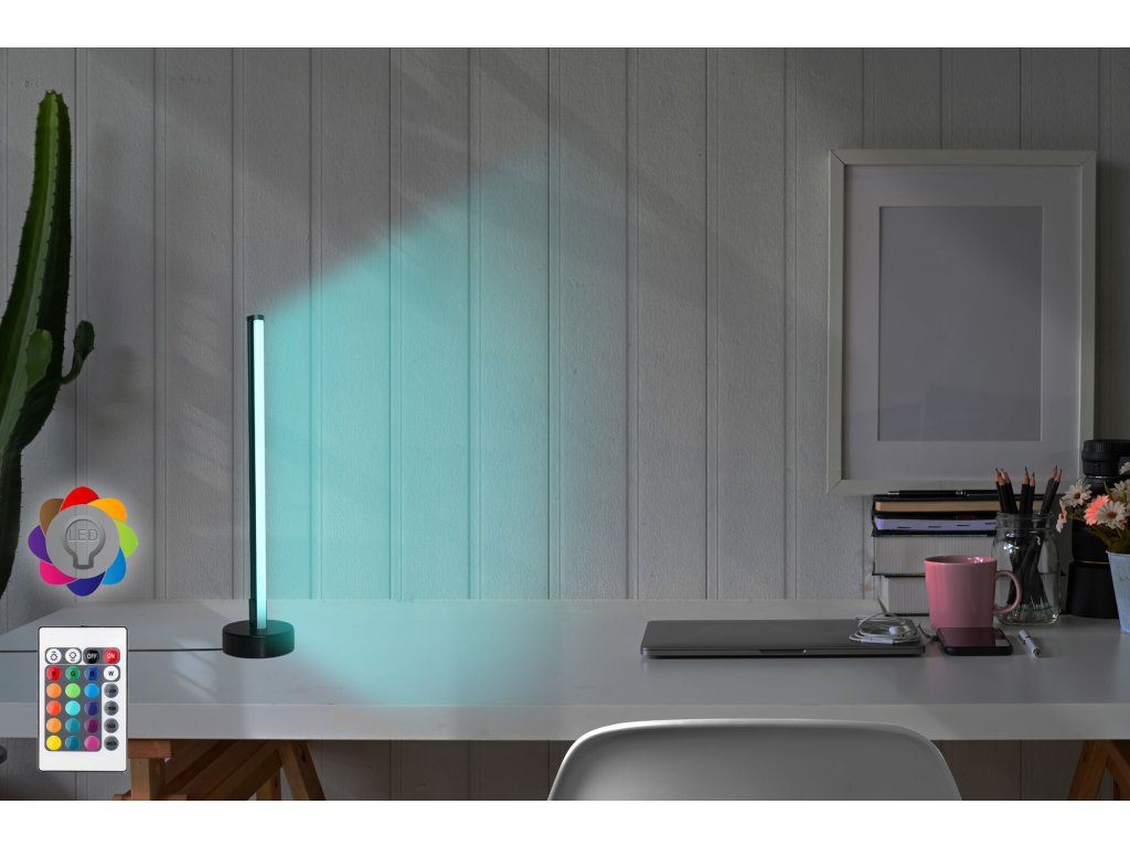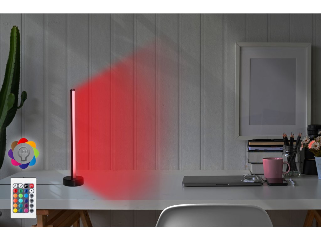 Stolní lampička LUMOS nabízí spektrum pěti barev, které můžete nasměrovat na cokoliv, co chcete barevně zdůraznit.
