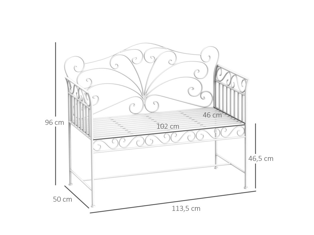 Tato krásně navržená, vysoce kvalitní lavička zkrášlí a vylepší vaši zahradu nebo balkon. Tato zahradní lavička v bílé barvě je vyrobena z kovových trubek s práškovým nástřikem, a proto je velmi stabilní a robustní. Nabízí vám i vašim přátelům pohodlné místo pro zábavu a odpočinek venku. Posaďte se na tuto lavičku a užívejte si volný čas příjemně a uvolněně!