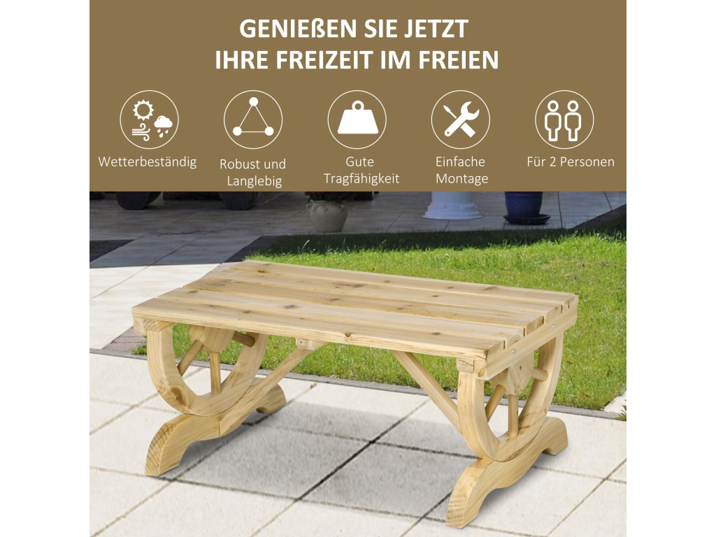 - DŘEVĚNÁ KONSTRUKCE: Nohy této dřevěné zahradní lavice připomínají kola vozů a dodají vašemu venkovnímu prostředí sofistikovaný nádech.