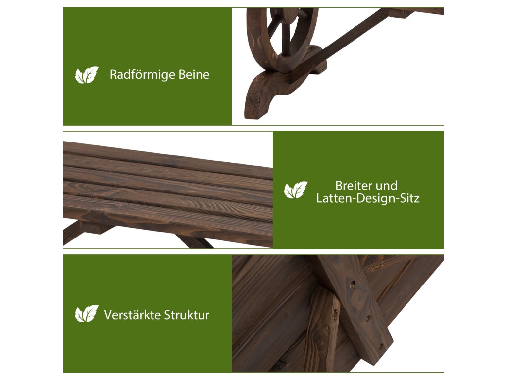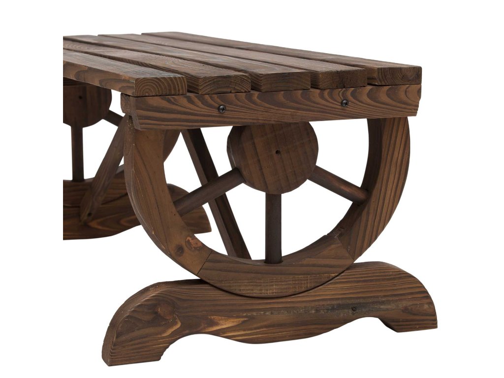 - DŘEVĚNÁ KONSTRUKCE: Nohy této dřevěné zahradní lavice připomínají kola vozů a dodají vašemu venkovnímu prostředí sofistikovaný nádech.