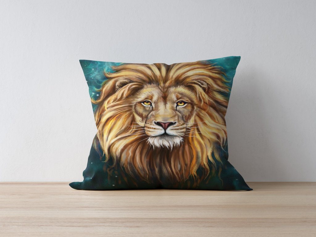 Povlak na polštář o rozměru 43 x 43 cm s motivem lva.