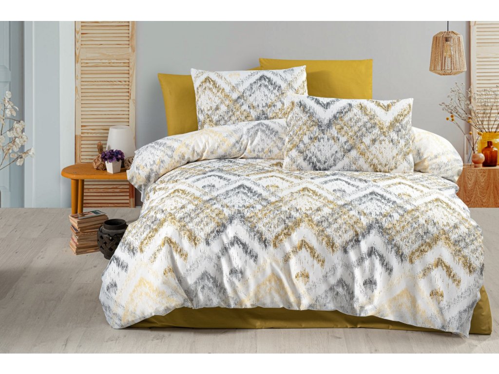 Vylepšete estetický vzhled své ložnice pomocí naší elegantní sady povlaků na přikrývky. Krásná kombinace hořčicové, krémové a šedé barvy dodá každému interiéru ložnice nádech sofistikovanosti a stylu. Ať už je váš styl moderní, současný nebo tradiční, naše sada povlaků na přikrývky bez námahy pozvedne atmosféru vašeho prostoru.