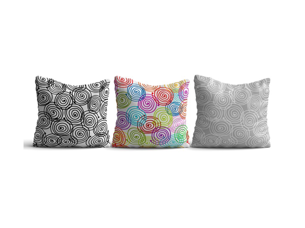 Sada tří povlaků na polštář se spirálami v různém barevném provedení.
