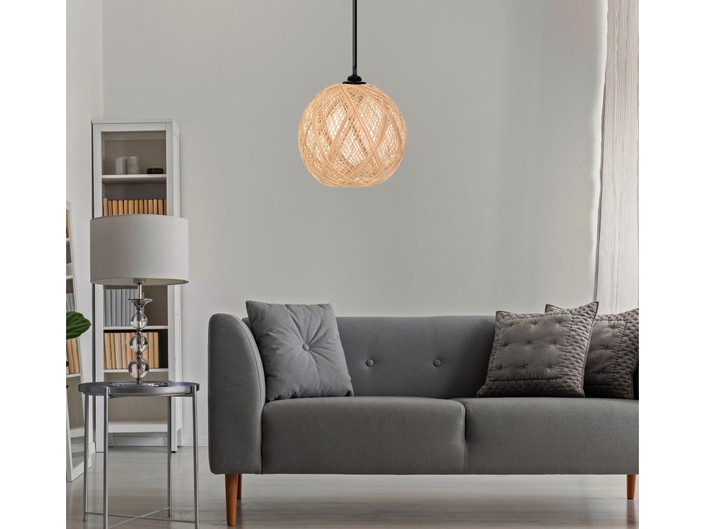 Jednoduchý lustr z jutového vlákna s černými detaily.