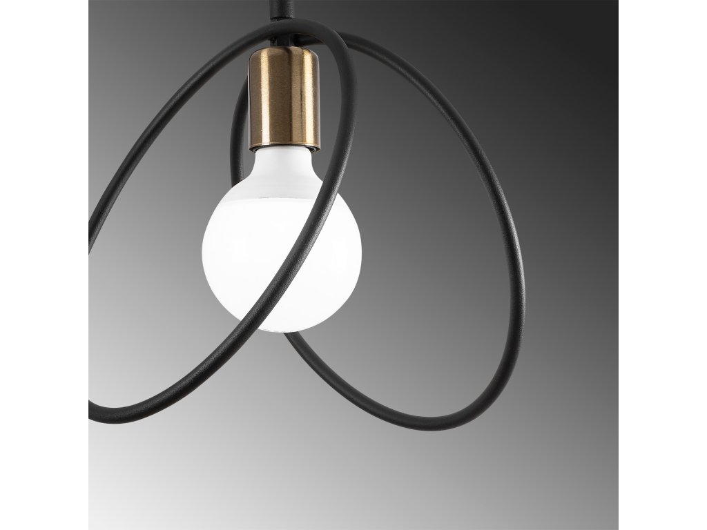 Černé kovové kruhy nikterak nebrání světlu, jen designově dotváří vzhled lustru.