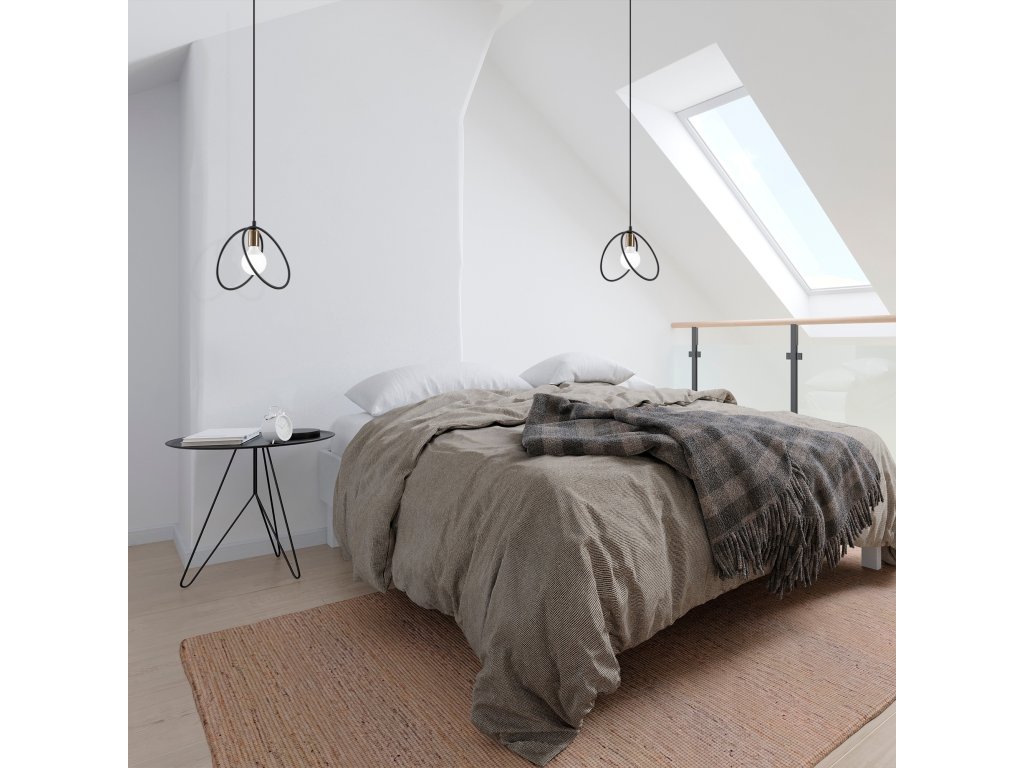 Lustr CIRCLE je sestavou černých kruhů rafinovaně poskládaných kolem žárovky.