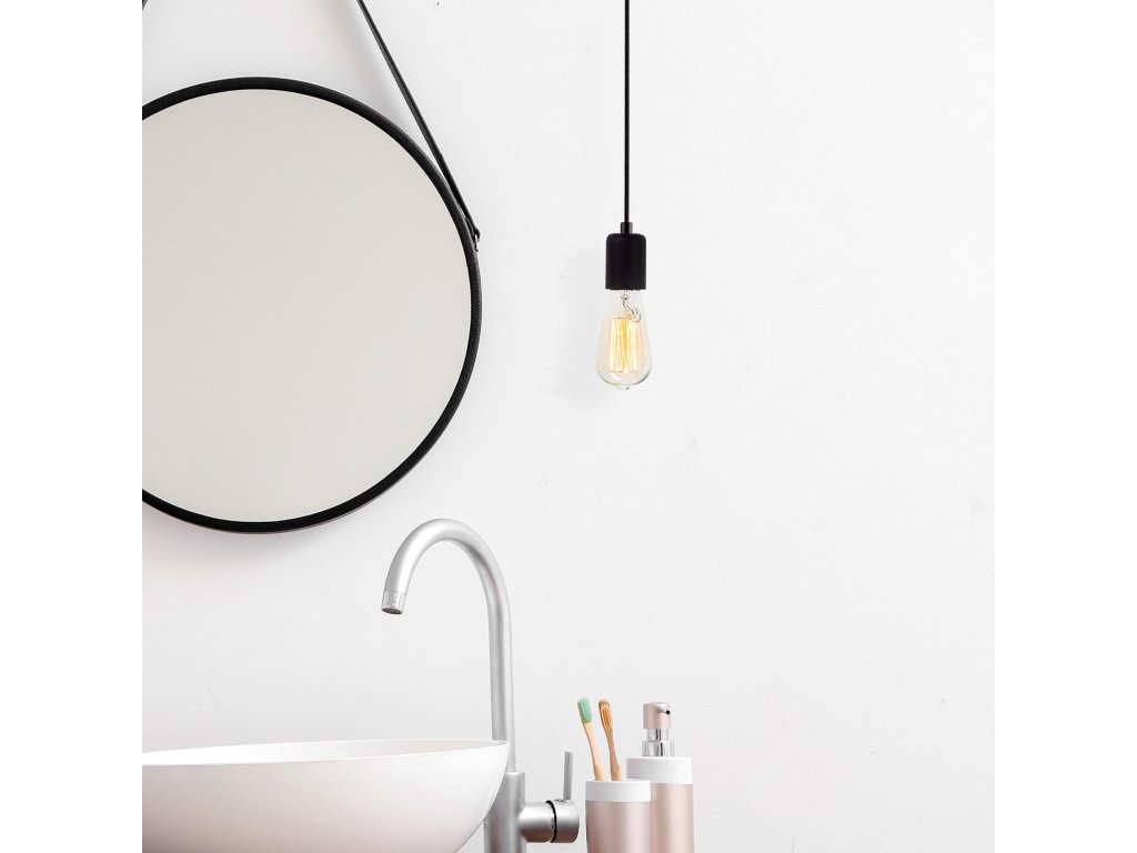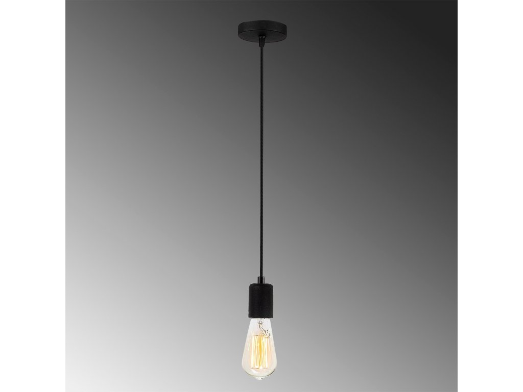 Černý lustr KABLUNI je tvořen malou základnou, ze které visí na variabilně dlouhém kabelu objímka bez stínítka.