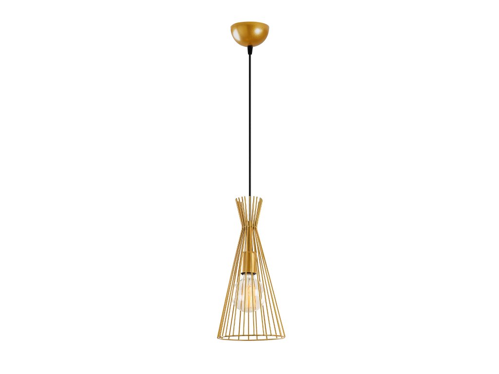 Zlatý lustr MEZOPOTAMYA je vyrobený z drobné základy, kabelu a drátěného stínítka.