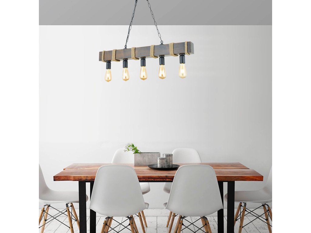 Rustikální lustr z kolekce SIMONA s dřevěnou základnou.