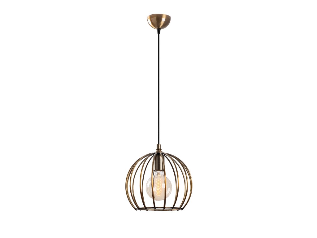 Mosazný lustr TELTRIO 45 Vás upoutá svým drátěným stínítkem kopulového tvaru.