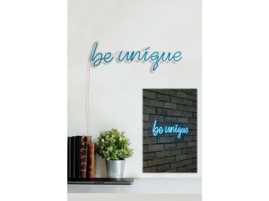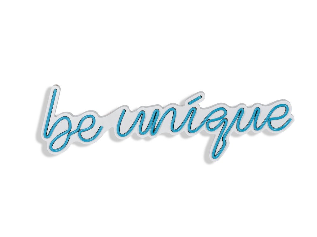 LED dekorativní nápis BE UNIQUE v modrém provedení.