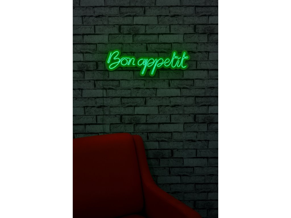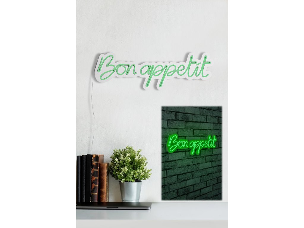 LED dekorativní nápis BON APPETIT v zeleném provedení.