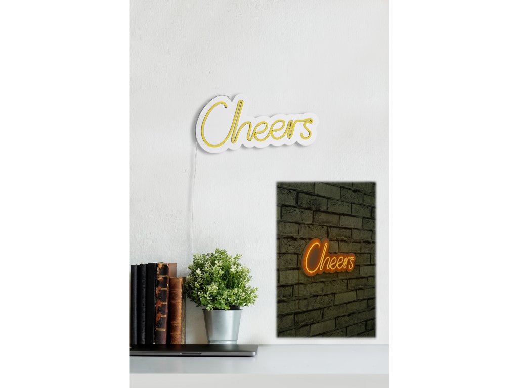 LED dekorativní nápis CHEERS v oranžovém provedení.