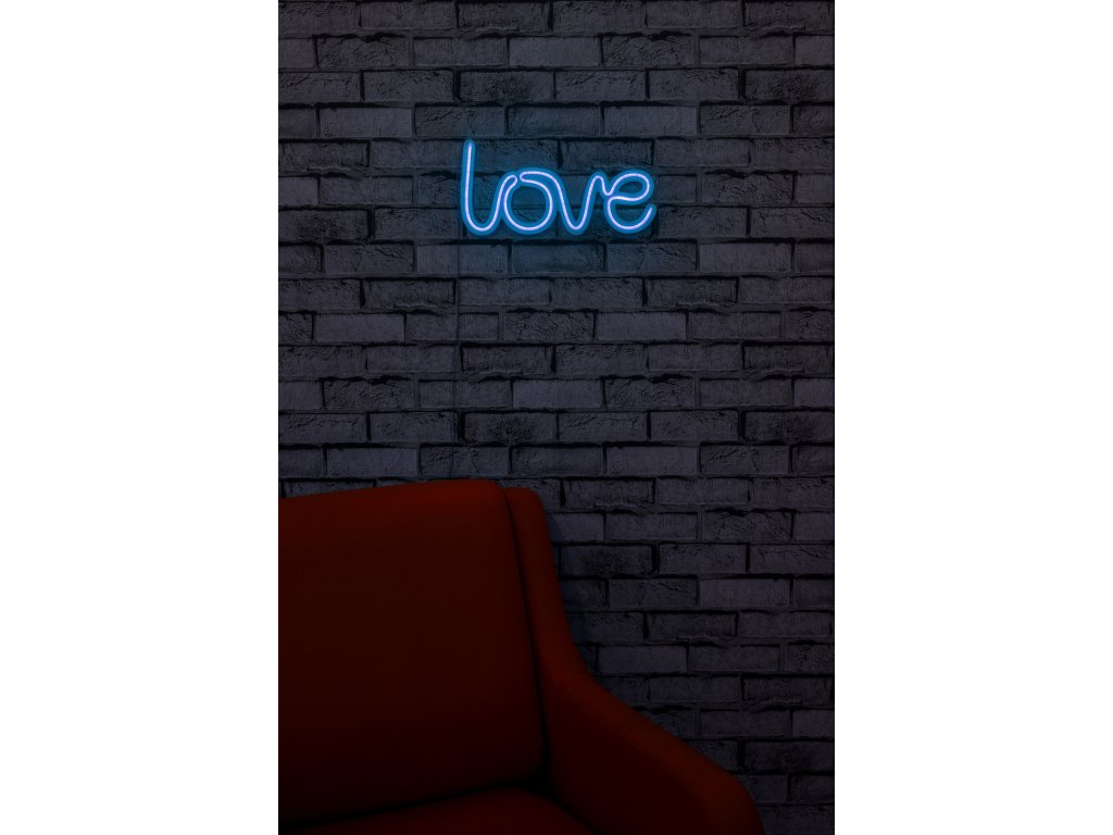 LED dekorativní nápis LOVE v modrém provedení.